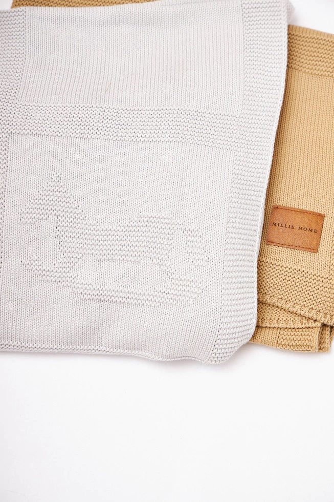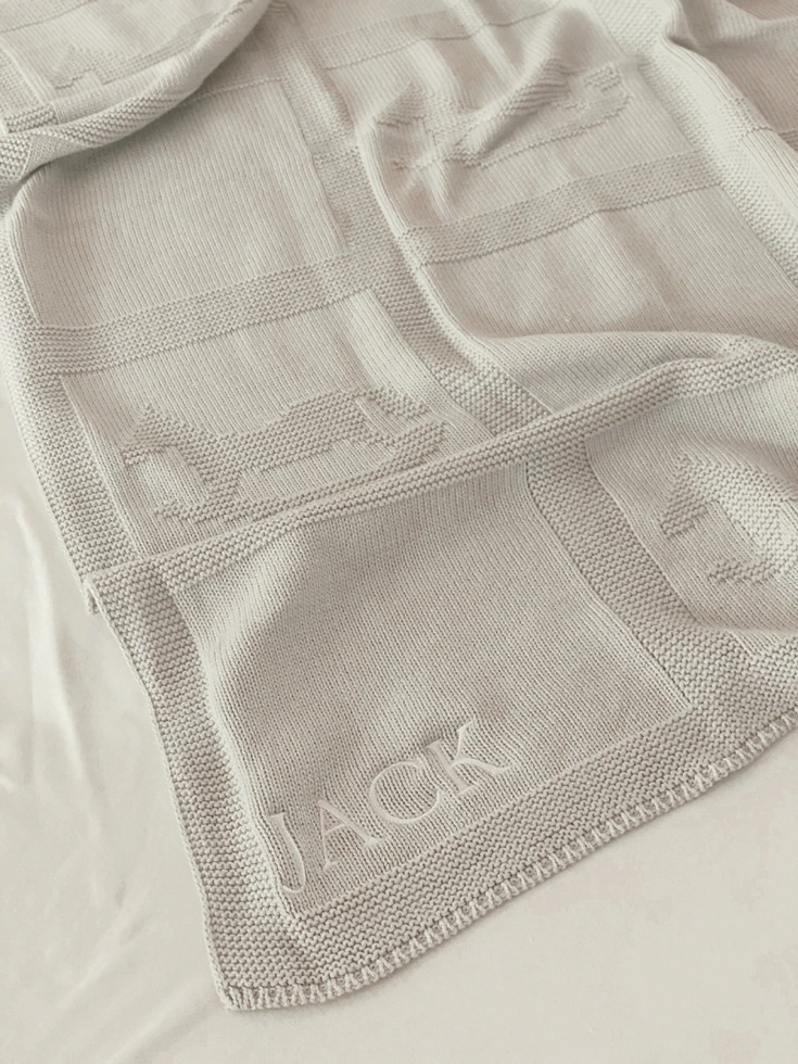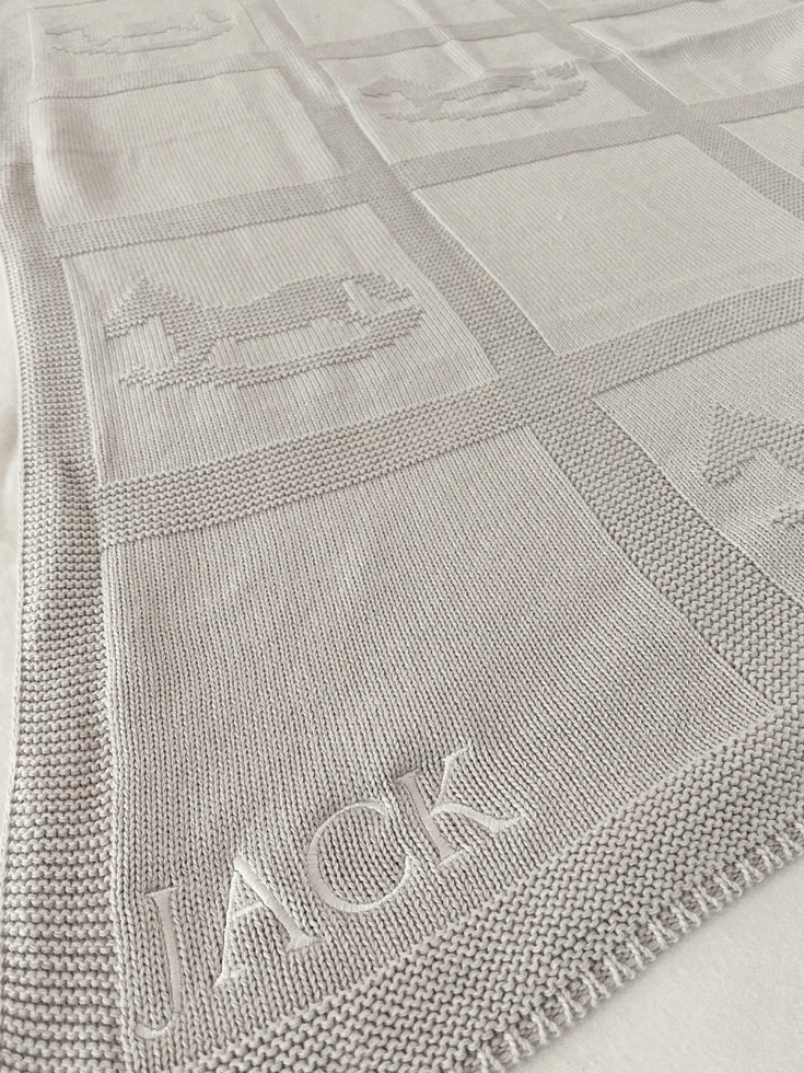 Opciones de colores de bordado para esta manta: blanco, gris oscuro.